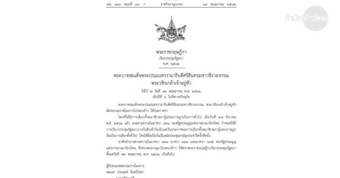 มีพระบรมราชโองการโปรดเกล้าฯ เปิดสมัยประชุมรัฐสภาตั้งแต่ 22 พ.ค.นี้