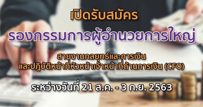 โอกาส กำลังรอคุณอยู่ มาร่วมงานกับเราในตำแหน่ง กรรมการผู้อำนวยการใหญ่ เปิดรับสมัคร ตั้งเต่ 21 สิงหาคม-3กันยายน 2563
