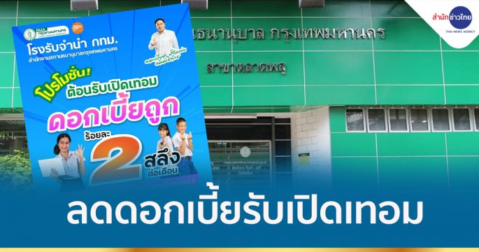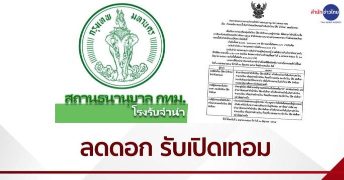โรงรับจำนำ กทม.จัดโครงการลดดอกเบี้ย ช่วยเหลือนักเรียน นิสิต นักศึกษาและผู้ปกครองในช่วงเปิดเทอม เริ่ม 1เม.ย.-30 มิ.ย.นี้