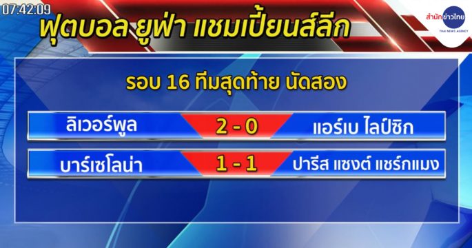 “หงส์แดง” ลิเวอร์พูล และ ปารีส แซงต์ แชร์กแมง ตบเท้าเข้ารอบ 8 ทีมสุดท้าย ฟุตบอลยูฟ่า แชมเปียนส์ ลีก