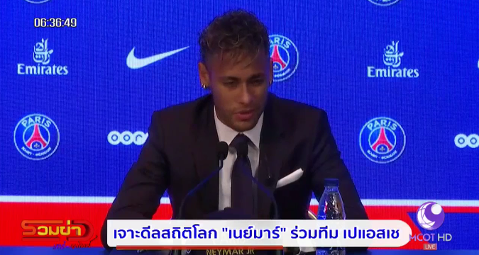 “เนย์มาร์” เปิดตัวเป็นนักเตะคนใหม่ของทีมปารีส แซงต์ แชร์กแมง ด้วยสัญญา 5 ปี และค่าตัว 222 ล้านยูโร หรือราว 8,880 ล้านบาท