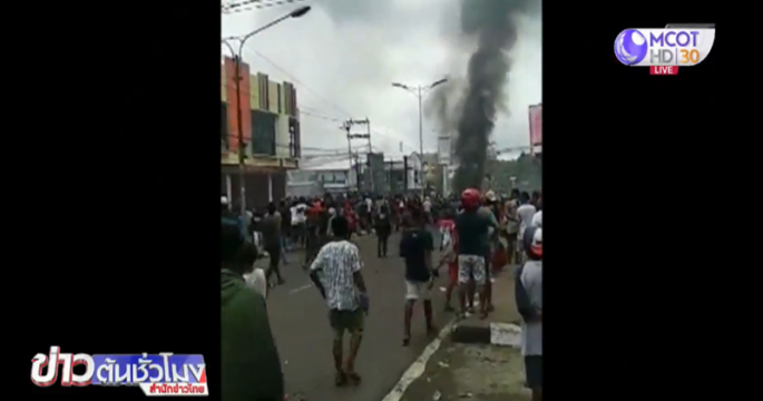 เกิดเหตุวุ่นวาย กลุ่มผู้ประท้วงที่จังหวัดปาปัว ทางภาคตะวันออกของอินโดนีเซีย จุดไฟเผายางรถยนต์และพยายามลอบวางเพลิงสถานที่ราชการ