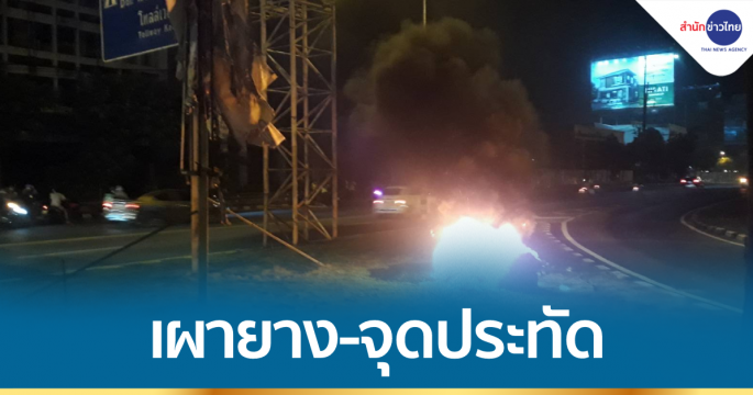 ชายนิรนามเผายางกลางแยกไฟแดงทำวุ่นทั้งเมือง