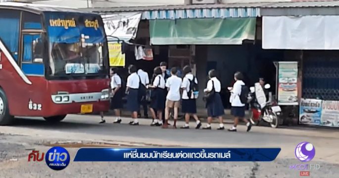 นักเรียนต่อแถวขึ้นรถเมล์ เผยเคยกรูแย่งกันแล้วเสียเวลา เลยตกลงทำให้เหมือนอยู่โรงเรียน