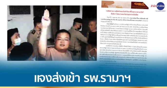 เลขาฯ รมว.ยุติธรรม แจงส่ง “เพนกวิน” เข้า รพ.รามาฯ เพราะเจ้าตัวแจ้งพยาบาลว่าถ่ายเป็นเลือด ให้แพทย์เช็กอาการส่องกล้องตรวจกระเพาะมีแผลหรือไม่ ให้สารอาหารให้ร่างกายฟื้นตัวได้เร็ว