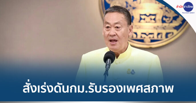 นายกฯ สั่ง พม.เร่งดันกฎหมายรับรองเพศสภาพเข้าสภาฯ ขอความร่วมมือหน่วยงานเกี่ยวข้องส่งเสริมความเท่าเทียม ให้เกียรติทุกกลุ่ม