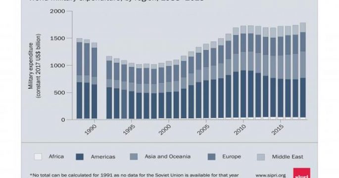 เผยปีที่แล้วงบกลาโหมสหรัฐเพิ่มขึ้นครั้งแรกนับตั้งแต่ปี 2553 สะท้อนถึงนโยบายของรัฐบาลโดนัลด์ ทรัมป์ เช่นเดียวกับงบกลาโหมทั่วโลกที่เพิ่มขึ้นเป็นปีที่สองติดต่อกัน