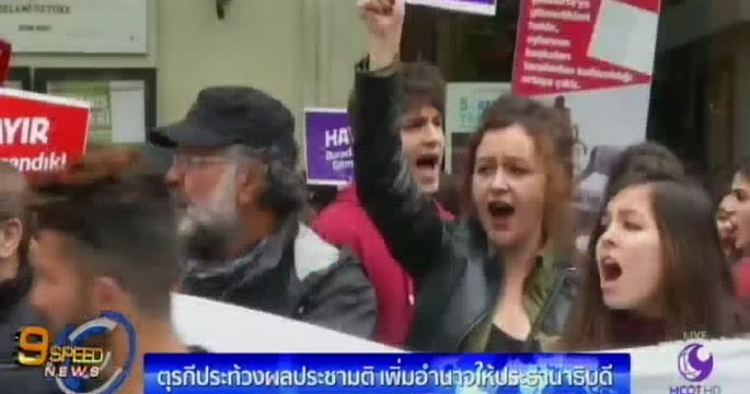 ชาวตุรกีหลายร้อยคนเดินขบวนประท้วงในตามถนนในนครอิสตันบูลเมื่อวานนี้ คัดค้านผลประชามติที่เพิ่มอำนาจให้กับประธานาธิบดี ทายยิป แอร์โดอัน