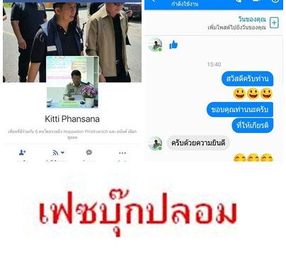 พระนครศรีอยุธยา 18 พ.ย.- รองผู้การอยุธยาเจอเองจับพิรุธเฟซบุ๊กปลอมแชทคุยอ้างเป็นอธิบดีกรมราชทัณฑ์จัดสร้างวัตถุมงคลการกุศล ขอให้ช่วยเช่าซื้อเป็นเงิน 80,000 บาท เร่งขยายผลตามจับ พ.ต.อ.ภูวดิท ชนะคชภัทร์ รองผู้บังคับการตำรวจภูธรจังหวัดสิงห์บุรี ปฏิบัติราชการในตำแหน่งรองผู้บังคับการตำรวจภูธรจังหวัดพระนครศรีอยุธยา เปิดเผยว่า เมื่อไม่กี่วันมานี้พบเฟซบุ๊กแอบอ้างเป็น พ.ต.อ.ดร.ณรัชต์ เศวตนันทน์ อธิบดีกรมราชทัณฑ์ ติดต่อการสนทนากับตนทางเฟซบุ๊กส่วนตัวหลายครั้ง มีการพูดถึงรุ่นนักเรียนนายร้อยสามพราน และขอให้ช่วยเช่าซื้อพระเครื่องพิมพ์มเหศวร อ้างว่าจัดสร้างเพื่อหาเงินช่วยเหลือการกุศล ในราคาองค์ละ 400 บาท โดยขอให้ช่วยเช่าซื้อ 200 องค์ รวมเป็นเงิน 80,000 บาท จนเกิดข้อสงสัย จึงประสานไปยังทีมงานของอธิบดีกรมราชทัณฑ์และทราบชัดเจนว่าเป็นเฟซบุ๊กแอบอ้าง ขณะนี้อยู่ระหว่างการรวบรวมหลักฐานเพื่อขยายผลกับผู้แอบอ้างรายนี้มาดำเนินคดี เพราะได้ข้อมูลมาแล้วส่วนหนึ่งจากการสนทนาส่วนตัว รวมถึงเลขบัญชีธนาคารที่จะนำมาเป็นหลักฐานประกอบคดี.-สำนักข่าวไทย