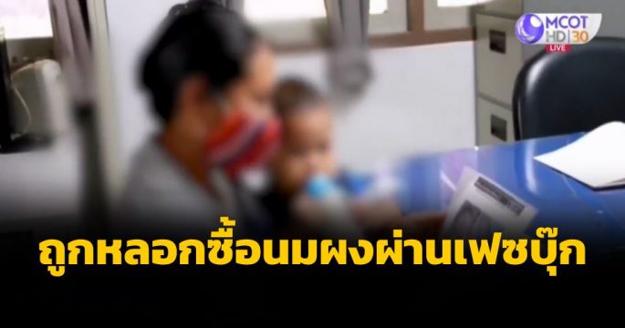 หญิงวัย 37 อุ้มลูกชายวัยขวบเศษ เข้าแจ้งความถูกผู้ใช้เฟซบุ๊กหลอกซื้อนมผงโอนเงินแล้ว 600 บาทแต่ผ่านไป 3 วันแล้วยังไม่ได้รับของ