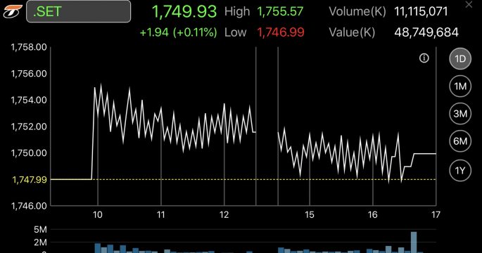 ตลาดหุ้นไทย ปิดบวก 6.40 จุด เคลื่อนไหวตามภูมิภาค โดยมีปัจจัยบวกในประเทศ จากความชัดเจนเรื่องกรอบระยะเวลาการเลือกตั้ง