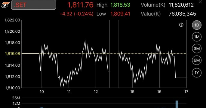 หุ้นไทยลบ 4.32 จุด ขาดปัจจัยใหม่ เคลื่อนไหวแคบ ๆ รอประชุมเฟดสัปดาห์หน้า