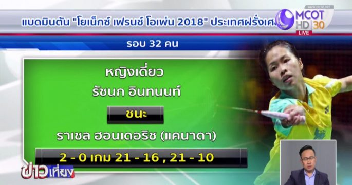 รัชนก อินทนนท์ ผ่านเข้ารอบ 8 คนสุดท้าย หลังเอาชนะ เฉิน เสี่ยวซิน จากจีน ในแบดมินตัน เฟรนช์ โอเพ่น ที่ฝรั่งเศส