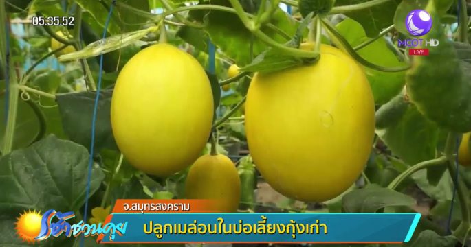 เกษตรกรชาวตำบลนางตะเคียน อำเภอเมืองสมุทรสงคราม เปลี่ยนวิกฤติเป็นโอกาส ปลูกเมลอนในบ่อเลี้ยงกุ้งสร้างรายได้ หลังจากขาดทุนจากการเลี้ยงกุ้งกุลาดำและปลานิลเมื่อ 20 ปีก่อน