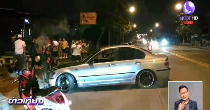 หนุ่มเมาดริฟท์ BMW โชว์! เสียหลักพุ่งชน จยย.เจ็บ 2 ราย