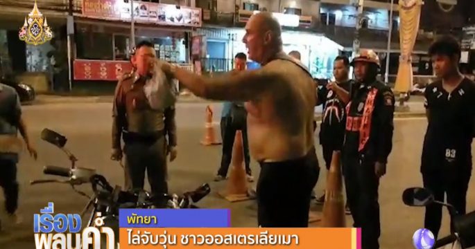 ตำรวจเมืองพัทยาเข้าชาร์จตัวชายชาวต่างชาติ หลังก่อเหตุเมาอาละวาด ขี่ชอปเปอร์เฉี่ยวชนรถจักรยานยนต์ชาวบ้านพร้อมตะโกนด่าทอเจ้าหน้าที่