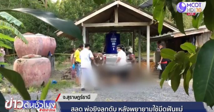 ลูกเมาอาละวาดทำลายข้าวของเสียหาย จะใช้มีดปังตอฟันแม่ แต่ถูกผู้เป็นพ่อใช่อาวุธปืนยิง 3 นัดดับคาที่