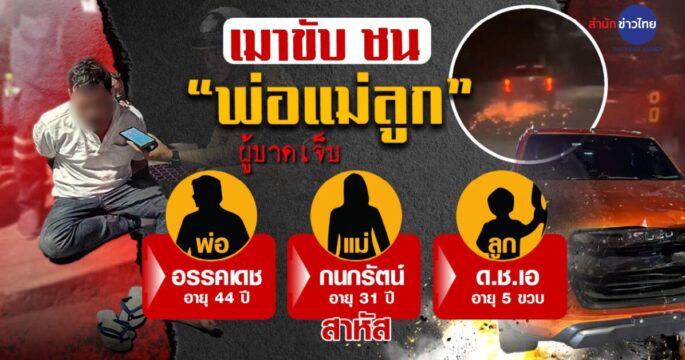 กระบะเมาแล้วขับ ชนพ่อแม่ลูก บาดเจ็บสาหัส