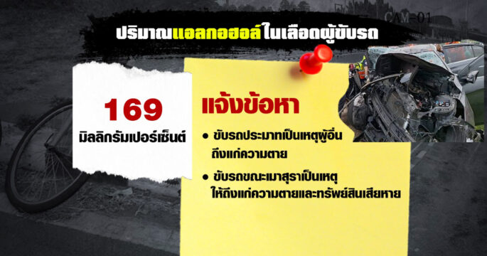 ตำรวจเมาขับกระบะพุ่งชนรถ จยย. ลาก ด.ช.วัย 12 ปี ติดไปกับล้อรถไกลกว่า 300 เมตร ตรวจวัดปริมาณแอลกอฮอล์สูงถึง 321 มิลลิกรัมเปอร์เซ็นต์ ส่วนเด็กยังอยู่ห้องไอซียู