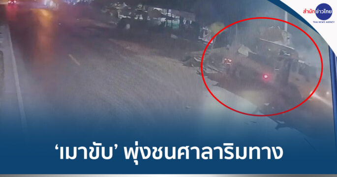 หนุ่มเมียนมาขับรถบรรทุกหกล้อพุ่งชนศาลาริมทาง ก่อนพยายามขับรถหนี แต่ถูกสกัดจับได้ ตรวจสอบพบอยู่ในสภาพมึนเมา คุมตัวส่งดำเนินคดี