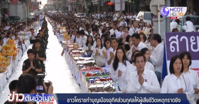 ชาวโคราชทำบุญเมือง อุทิศส่วนกุศลให้ผู้เสียชีวิตเหตุกราดยิง