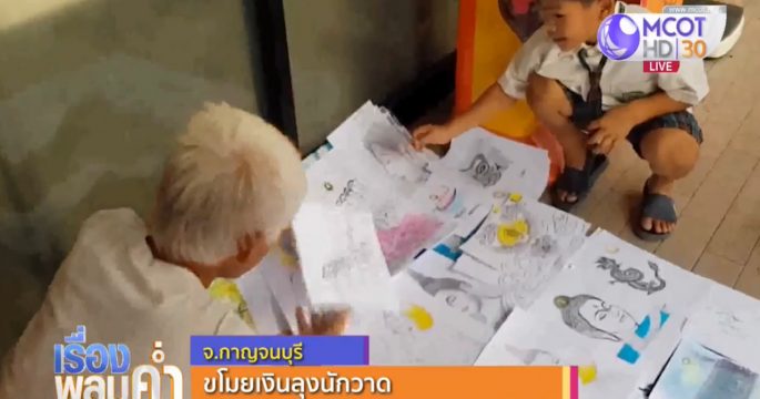 ลุงวัย 65 วาดภาพขายใบละ 5 บาท หน้าร้านสะดวกซื้อเมืองกาญจน์ ถูกขโมยโทรศัพท์และเงินที่เก็บสะสมมานาน 2 เดือน เขียนป้ายวอนคนร้ายช่วยนำเงินมาคืน