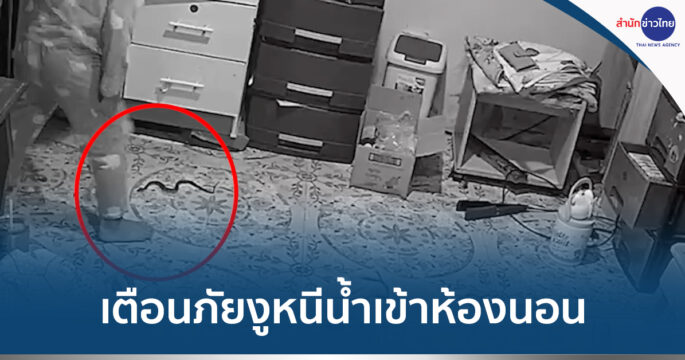 เตือนภัยงูหนีน้ำเข้าห้องนอน เด็ก 7 ขวบเกือบเหยียบ