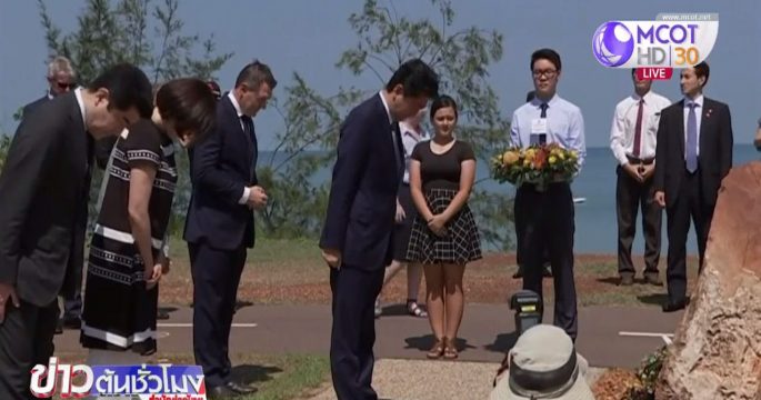 นายชินโซ อาเบะ นายกรัฐมนตรีญี่ปุ่น เดินทางเยือนอนุสรณ์สถานที่เมืองดาร์วินของออสเตรเลีย เพื่อคารวะดวงวิญญาณของทหารเรือญี่ปุ่น 80 นายที่เสียชีวิตพร้อมเรือดำน้ำในน่านน้ำออสเตรเลีย สมัยสงครามโลกครั้งที่ 2