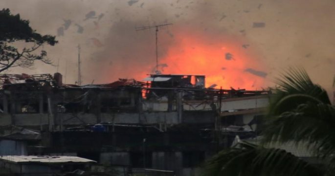เครื่องบินกองทัพฟิลิปปินส์ทิ้งระเบิดถล่มที่มั่นกลุ่มติดอาวุธในเมืองมาราวี ประสานกับกองกำลังภาคพื้นดินที่เปิดฉากรุกรบครั้งใหม่ หวังปิดฉากการสู้รบ