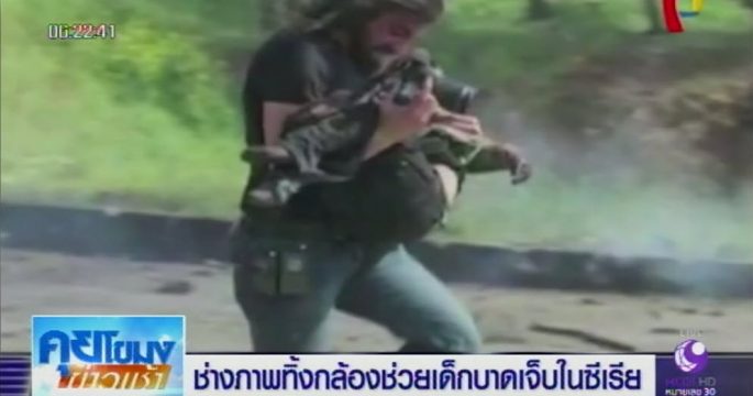 ช่างภาพผู้บันทึกเหตุการณ์ระเบิดรถยนต์โจมตีขบวนรถบัสผู้อพยพซีเรียเมื่อสัปดาห์ที่แล้ว ยอมทิ้งหลักการทำงานด้วยการทิ้งกล้องแล้วเข้าช่วยเหลือเด็กๆ ที่ได้รับบาดเจ็บจากเหตุโจมตี