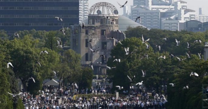 นายกฯ ญี่ปุ่น ร่วมพิธีรำลึก 74 ปี ระเบิดปรมาณูถล่มเมืองฮิโรชิมา