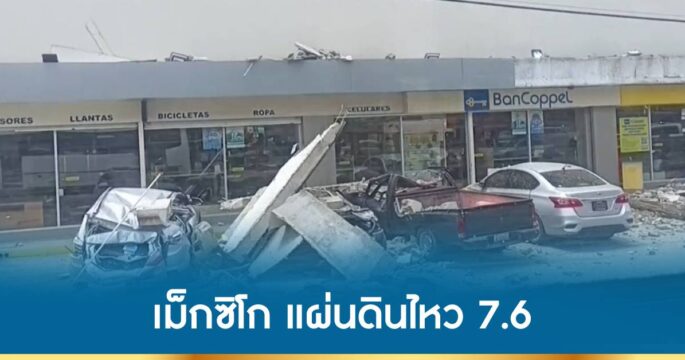 แผ่นดินไหวขนาด 7.6 เขย่าเม็กซิโก กำแพงห้างสรรพสินค้าแห่งหนึ่งพังถล่ม โรงพยาบาล 2 แห่งได้รับความเสียหาย มีผู้เสียชีวิตแล้ว 1 คน