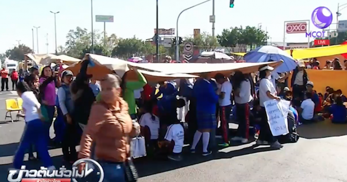 เด็กนักเรียนและครูจากโรงเรียนที่ได้รับความเสียหายจากแผ่นดินไหวในเม็กซิโกเมื่อ 2 เดือนก่อน พากันตั้งห้องเรียนกลางถนน เพื่อกดดันให้ทางการเร่งซ่อมแซมอาคารเรียน
