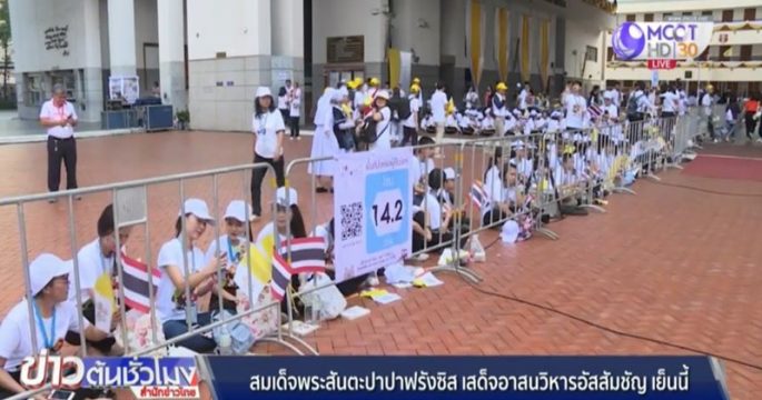 เยาวชนคาทอลิกหลั่งไหลรอรับเสด็จสมเด็จพระสันตะปาปาฟรังซิส ช่วงเย็นวันนี้จะเสด็จร่วมพิธีมิสซา ที่อาสนวิหารอัสสัมชัญ บางรัก โดยบริเวณจุดคัดกรองมีหนังสือที่ระลึกแจกให้กับคริสตชนด้วย