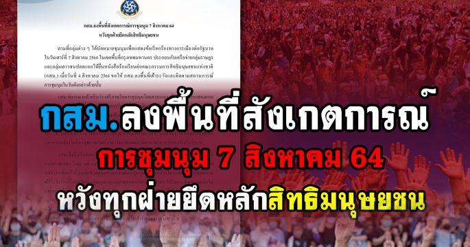 กสม. วันนี้ ( 4 ส.ค.) กลุ่มเยาวชนปลดแอก ร้อง กสม.ตรวจสอบ จนท.รัฐใช้ความรุนแรงสลายชุมนุม เรียกร้องให้ร่วมสังเกตการณ์การชุมนุม 7 ส.ค.นี้