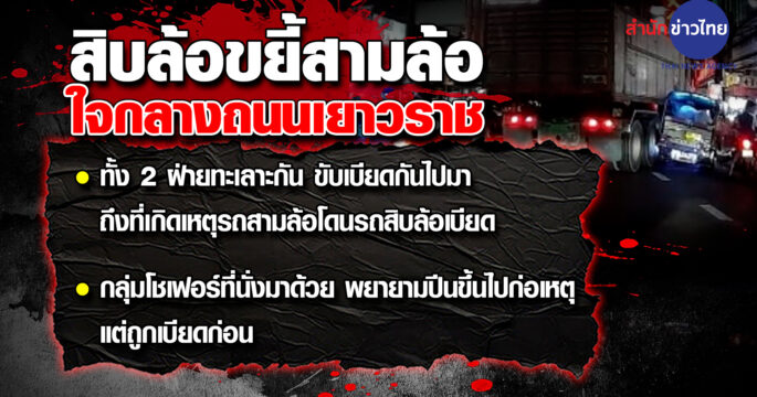 11 ก.ค.- รถบรรทุกหัวร้อน ขับเบียดรถตุ๊กตุ๊กกลางถนนเยาวราช ด้านตำรวจ สน.จักรวรรดิ เรียกทั้งสองฝ่ายมาสอบสวน เตรียมดำเนินคดีตามกฎหมาย ภาพจากกล้องหน้ารถ จับภาพเหตุการณ์รถบรรทุกเบียดรถตุ๊กตุ๊กกลางเยาวราช โดยในภาพจะเห็นว่าบนรถตุ๊กตุ๊กยังมีผู้โดยสารอยู่และจังหวะที่เบียดก็เป็นจังหวะที่ผู้โดยสาร ผู้หญิงกำลังจะลงจากรถตุ๊กตุ๊ก ถูกรถบรรทุกบีบไปกับรถตุ๊กตุ๊ก โชคดีที่ไม่ถูกลากไปใต้ท้องรถ จนชาวต่างชาวที่เห็นเหตุการณ์ถึงกับร้อง OH MY GOD! ช่วงบ่ายเมื่อวานนี้ (10 ก.ค.) ทีมข่าวได้ลงพื้นที่ถนนเยาวราช พูดคุยกับคนขายเกาลัดในละแวกนั้น เล่าให้ฟังว่า คาดว่าก่อนหน้านี้ทั้งคู่มีปากเสียงกันมาก่อนแล้วและขับรถเบียดกันไปมา จนมาถึงที่เกิดเหตุ รถสามล้อก็โดนรถสิบล้อเบียด ตามคลิป โดยคนที่อยู่หลังรถตุ๊กตุ๊ก ไม่ใช่ผู้โดยสาร แต่เป็นกลุ่มโชเฟอร์ที่นั่งมาด้วยกัน หลังจากถูกเบียดรถสิบล้อก็ขับหลบหนีไปเลย ตำรวจ สน.จักรวรรดิ ได้เรียกทั้งสองฝ่ายมาสอบสวนแล้วและจะดำเนินคดีตามกฎหมายต่อไป -สำนักข่าวไทย