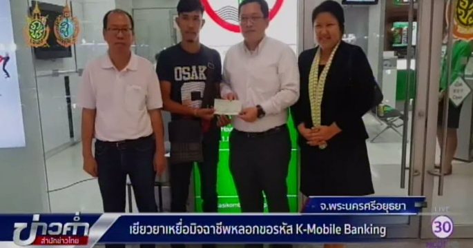 ประธานชมรมช่วยเหลือเหยื่ออาชญากรรม พร้อมผู้เสียหายเข้าพบกับตัวแทนธนาคารกสิกรไทย สำนักงานใหญ่ ก่อนที่จะนำเช็คจำนวน 986,700 บาท มามอบให้กับผู้เสียหาย