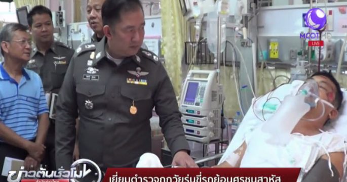 เยี่ยมให้กำลังใจตำรวจบาดเจ็บจากการปฏิบัติหน้าที่