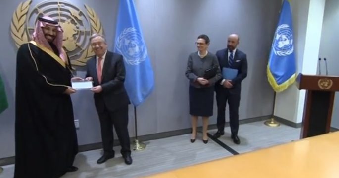 ซาอุดีอาระเบียมอบเช็คจำนวน 930 ล้านดอลลาร์สหรัฐให้แก่สหประชาชาติเพื่อให้ความช่วยเหลือด้านมนุษยธรรมในเยเมน