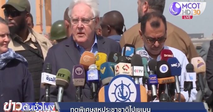 นายมาร์ติน กริฟฟิธ ผู้แทนพิเศษของสหประชาชาติ เดินทางมายังเมืองท่าโฮเดดา ของเยเมน เพื่อหาทางให้กองกำลังรัฐบาลเยเมนที่มีซาอุดีอาระเบียหนุนหลัง กับฝ่ายกบฎเยเมนที่มีอิหร่านหนุนหลัง