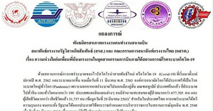 พันธมิตรสหภาพแรงงานคนทำงานสนามบิน เรียกร้องรัฐดูแลตามมาตรฐานแรงงานสากลและหลักมนุษยชน