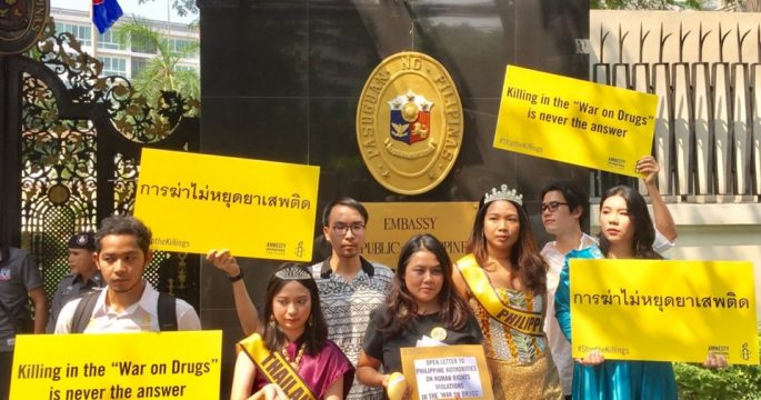 แอมเนสตี้ ประเทศไทย ยื่นหนังสือเรียกร้องต่อสถานทูตฟิลิปปินส์ ขอให้ทางการฟิลิปปินส์ ยุติการวิสามัญฆาตกรรมประชาชนในการทำสงครามปราบปรามยาเสพติด
