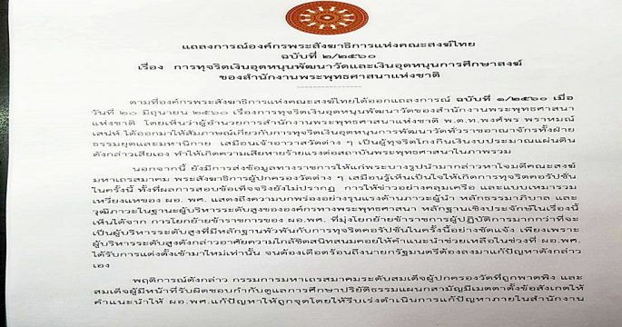 องค์กรพระสังฆาธิการแห่งคณะสงฆ์ไทย ออกแถลงการณ์ฉบับที่2 ขอความร่วมมือวัดทั่วประเทศ ขึ้นป้ายไม่ขอรับเงินอุดหนุนจาก พศ. จนกว่าจะเปลี่ยนผู้นำพศ.คนใหม่