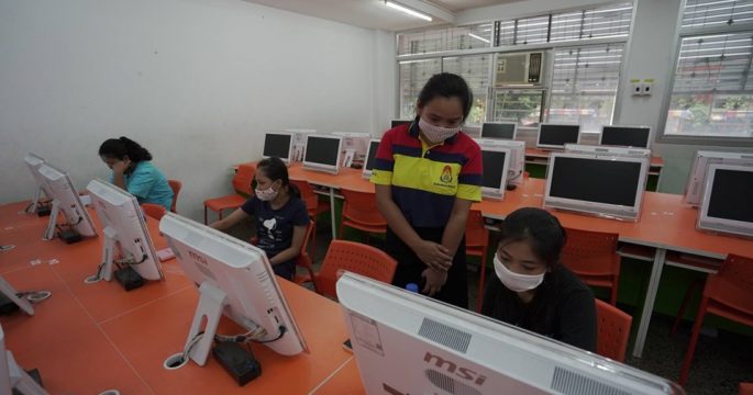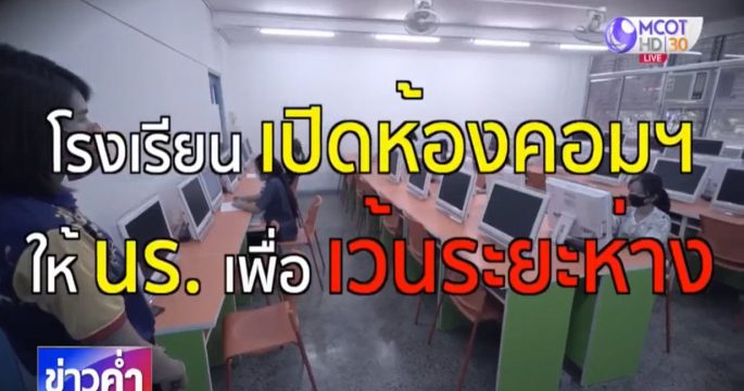 รร.วัดเขมาภิรตาราม เปิดห้องคอมพิวเตอร์ให้เด็กเรียนออนไลน์แก้ปัญหาเด็กไม่มีอุปกรณ์ อินเทอร์เน็ตช้าและกล่องรับสัญญาณเก่า พร้อมเตรียมแจกซิมเพิ่มเน็ตให้เด็ก