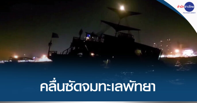 คลื่นลมแรงซัด “คาเฟ่เรือโจรสลัด” เอียงและจมกลางทะเลพัทยา เรือท่องเที่ยวหลายลำเข้าช่วยเหลือพนักงานที่อยู่ในเรือออกมาได้อย่างปลอดภัย