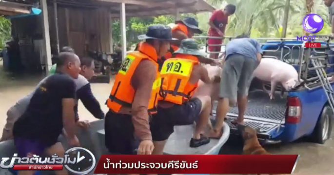 ทหารกองบิน 5 นำเรือท้องแบนเข้าช่วยผู้ประสบภัย ต.อ่างทอง อ.ทับสะแก จ.ประจวบคีรีขันธ์ ส่วนสะพานหนองหญ้าปล้อง เจ้าหน้าที่เร่งเสริมกระสอบทรายไม่ให้ตอม่อทรุดตัวเพิ่ม ขณะที่คอสะพานบ้านหนองไม้แก่นถูกกระแสน้ำพัดขาดอีกแห่ง