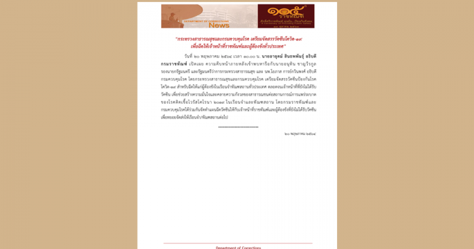 ราชทัณฑ์รายงานสถานกรณ์โควิด-19 ในเรือนจำ ผู้ต้องขังติดเชื้อวันนี้ 640 ราย ระบุเป็นการคัดกรองซ้ำ