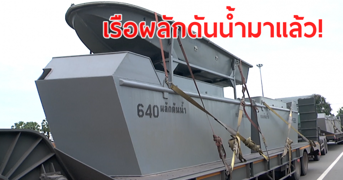 เรือผลักดันน้ำกองทัพเรือ เดินทางถึง อ.แกลง จ.ระยอง พร้อมเร่งติดตั้งให้แล้วเสร็จ เพื่อผลักดันน้ำทันที