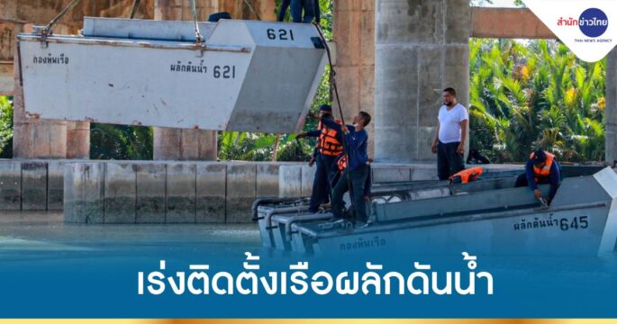 กองทัพเรือติดตั้งเรือผลักดันน้ำที่คลองลัดโพธิ์ เพื่อเร่งระบายน้ำออกสู่ทะเลให้เร็วยิ่งขึ้น ป้องกันน้ำท่วมพื้นที่กรุงเทพฯ หลังเขื่อนเจ้าพระยาเพิ่มการระบายน้ำ