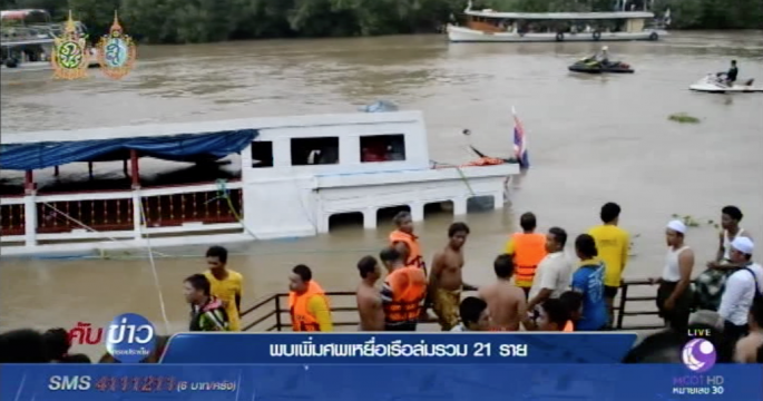 เจ้าหน้าที่ชุดค้นหาพบอีก 3 ศพ เหตุเรือล่มในแม่น้ำเจ้าพระยาหน้าวัดสนามไชย จ.พระนครศรีอยุธยา ยอดผู้เสียชีวิตล่าสุดอยู่ที่ 21 ราย เร่งค้นหาผู้สูญหายอีก 8 คน